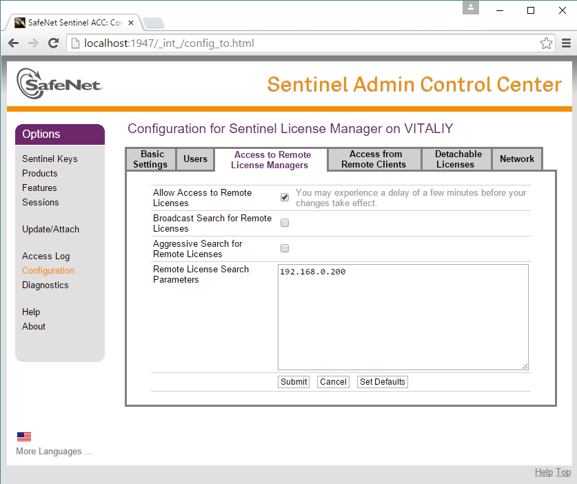 - Click ‘Access to Remote License Managers’ tab